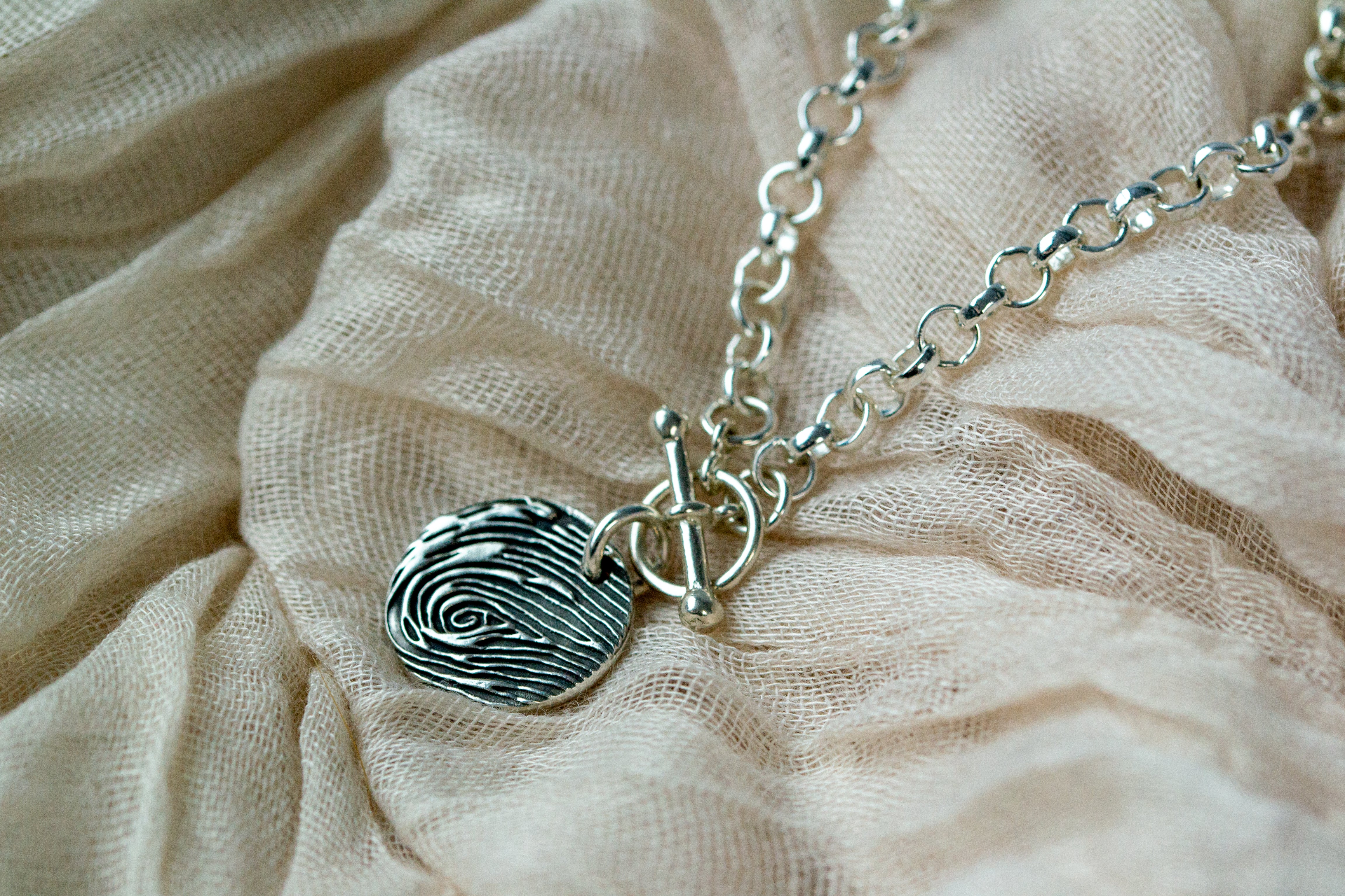 Yes, all our jewellery pieces, including personalised items like fingerprint jewellery, are crafted from high-quality sterling silver. This ensures a beautiful, durable finish that maintains its shine and quality over time.